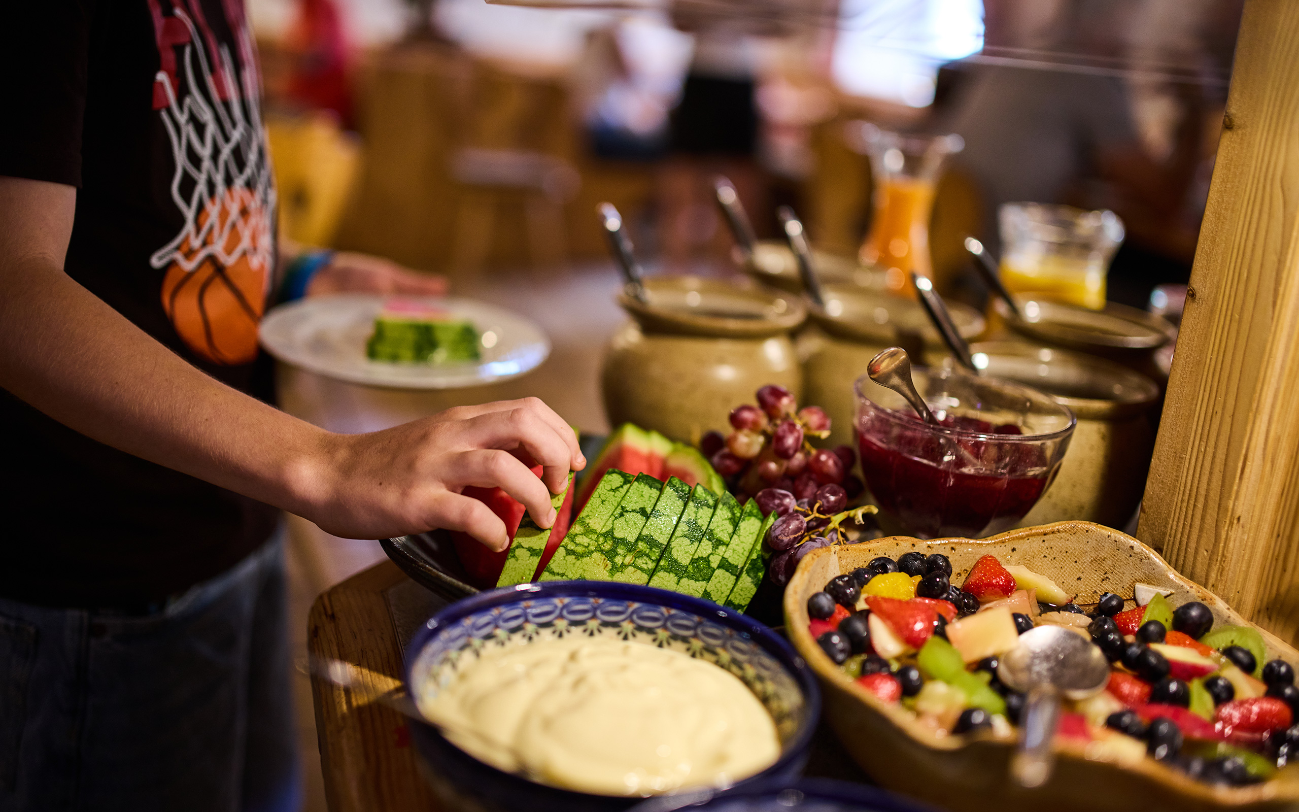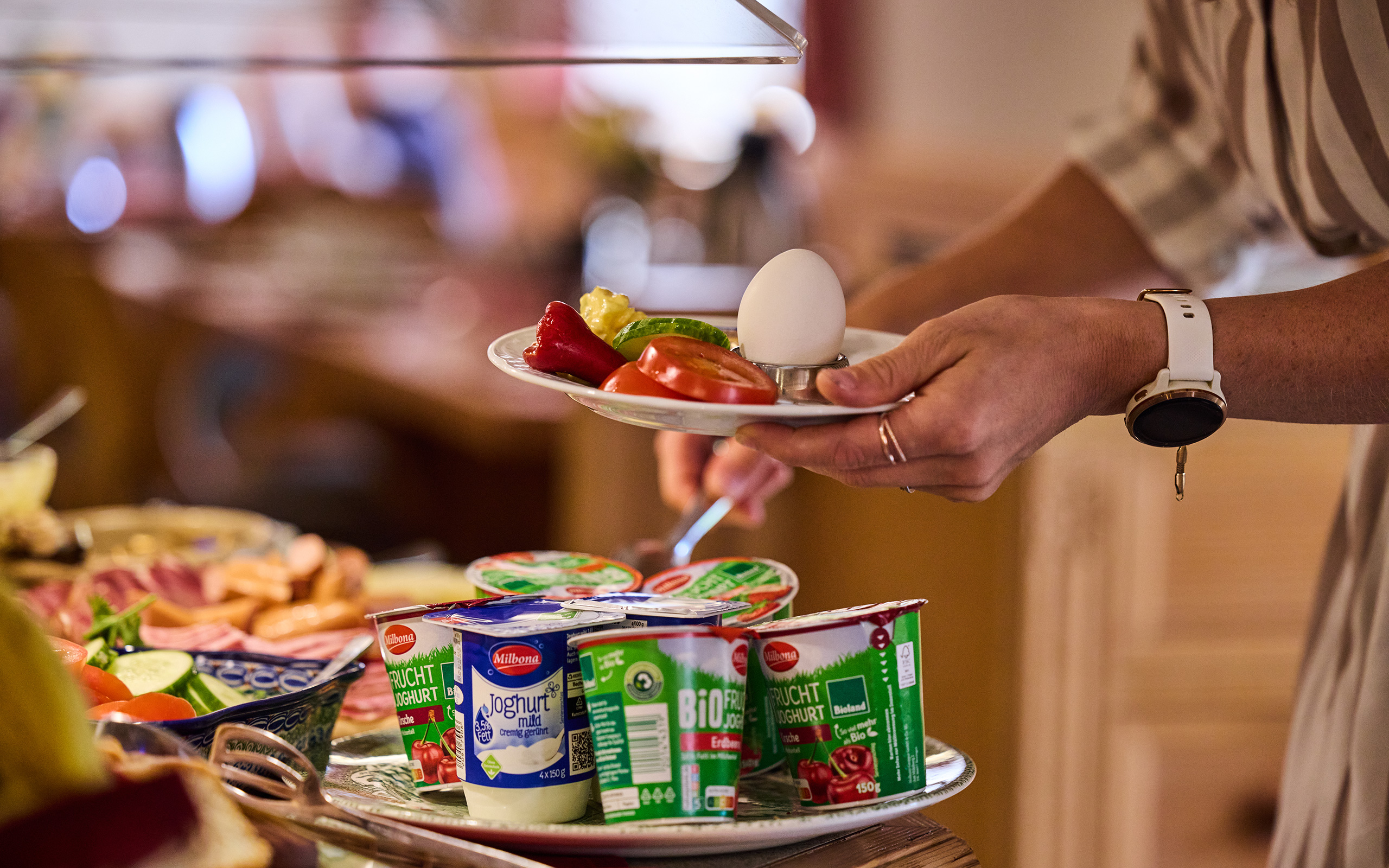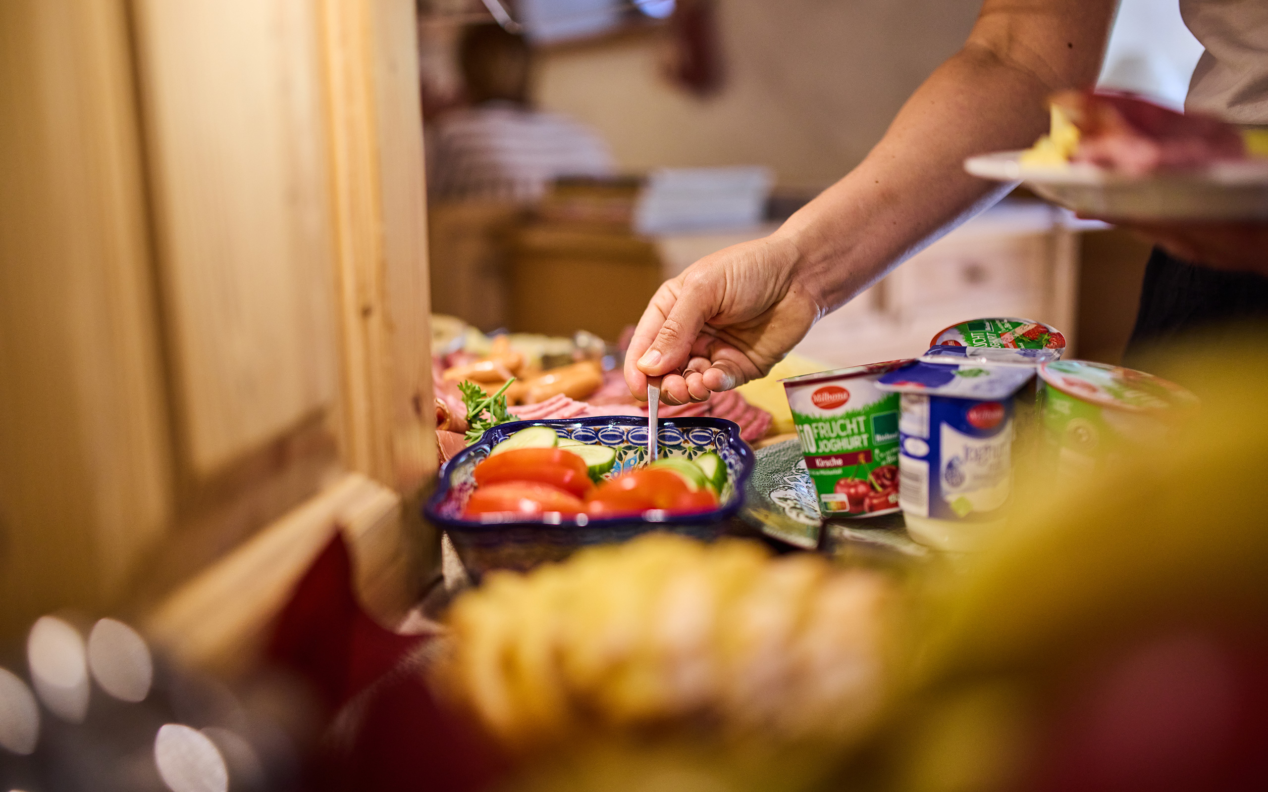 Unser Haus bietet ein reichhaltiges Frühstücksbuffet an, das auf Wunsch auch unseren Ferienwohnungsgästen zur Verfügung steht. Die Spezialitäten aus eigener Schlachtung sind ein besonderer Genuss, ebenso wie unser selbstgebrannter Schnaps. Wenn das Wetter einmal nicht mitspielt, lädt die behagliche Kachelofen-Ecke zum Verweilen und Entspannen ein.